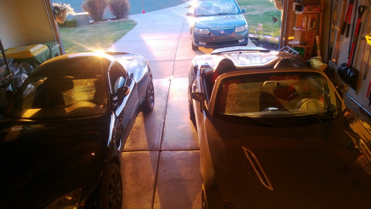 Spending the night with relatives...and keeping the car in good company with my aunt's Redline